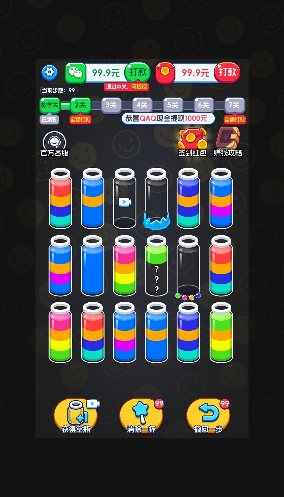 玩法看似简单,但随着关卡的深入,神秘的“问号瓶”和特殊机制将带来意想不到的挑战!准备好迎接这场烧脑又解压的色彩风暴了吗?